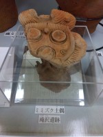 頭部の一部分ですが、かなり大きめのミミズク土偶が展示されています。手のひらくらいの大きさでしょうか?